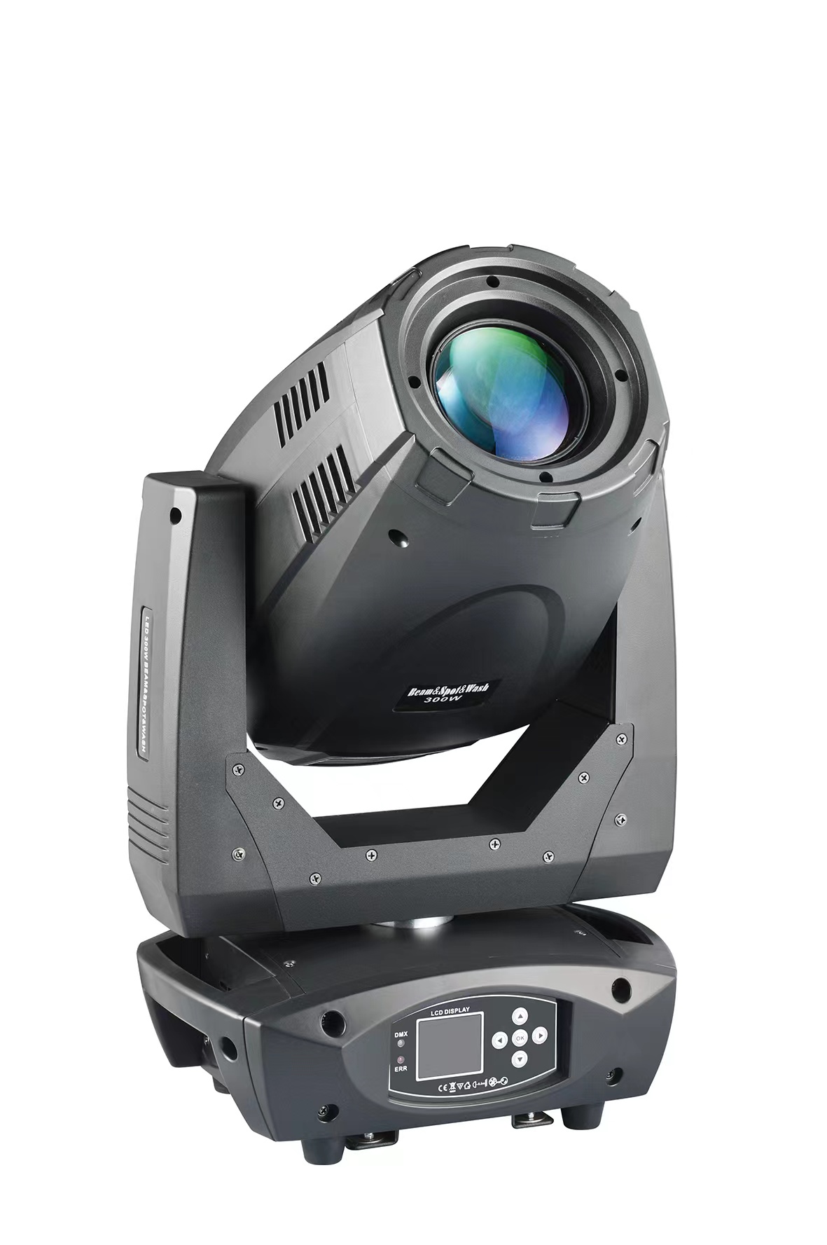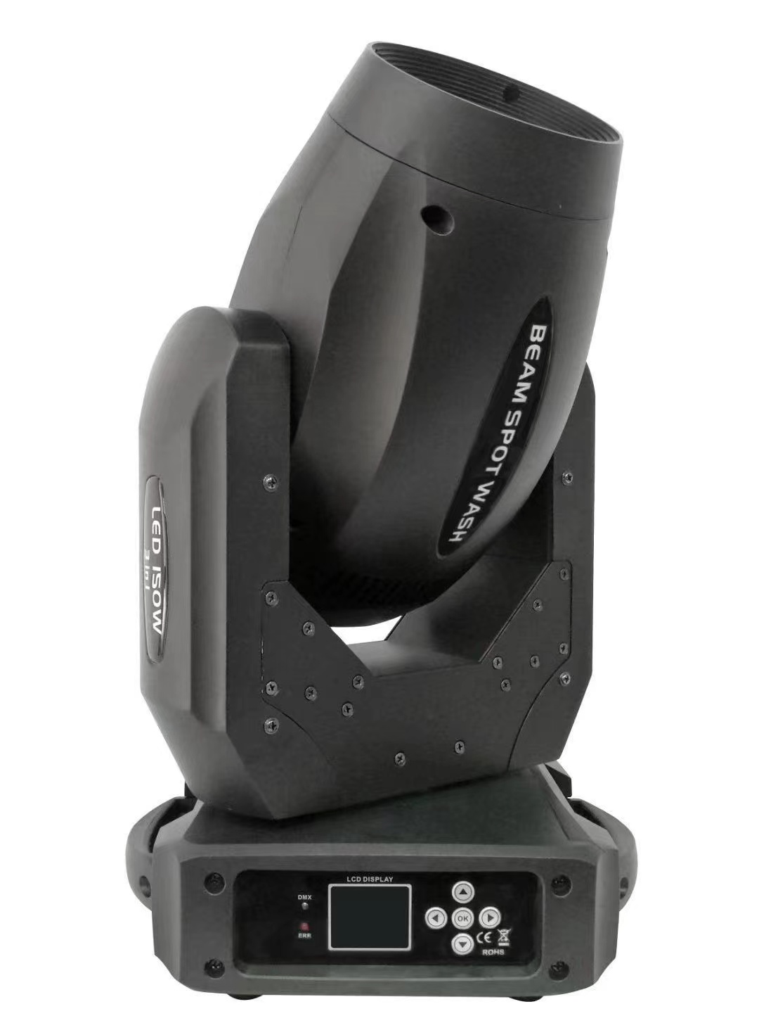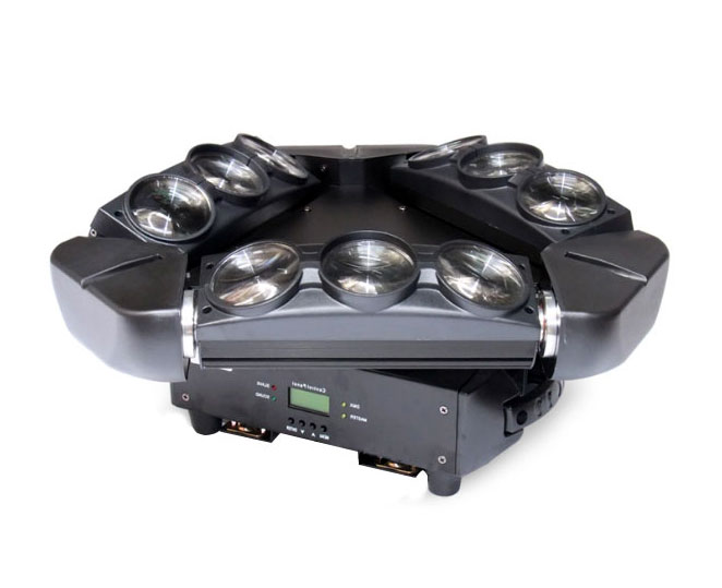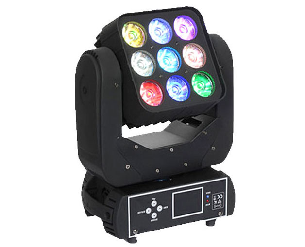 -极其小巧,快速的LED 摇头矩阵光束灯。通道数值: 13 与 48水平/垂直: 540°/180°, 16bit精度扫描。总功率:115W 光源:9 颗 12W 红绿蓝白 4合1 灯珠 输入电压:AC 100-240 V ,50/60HZ